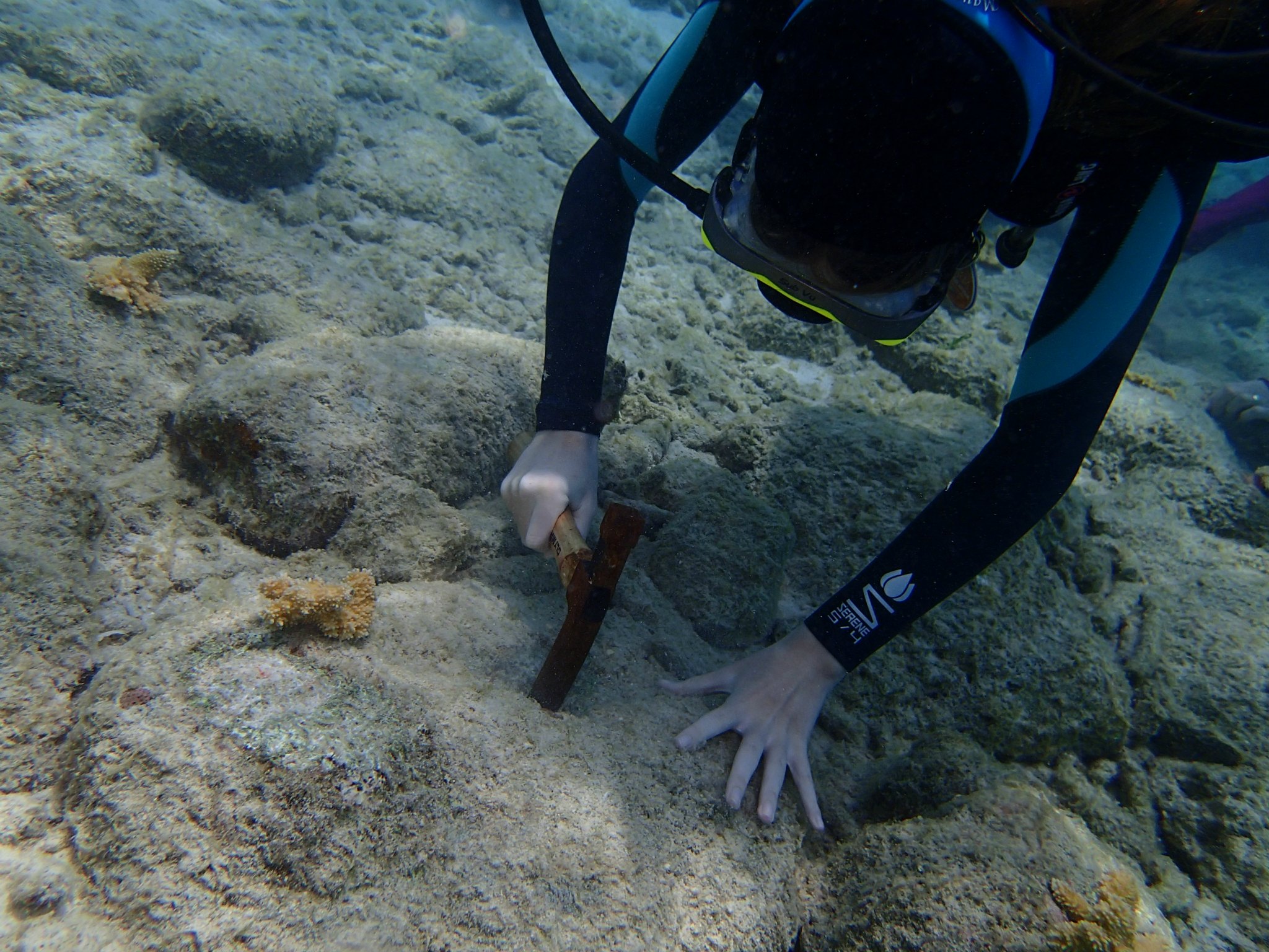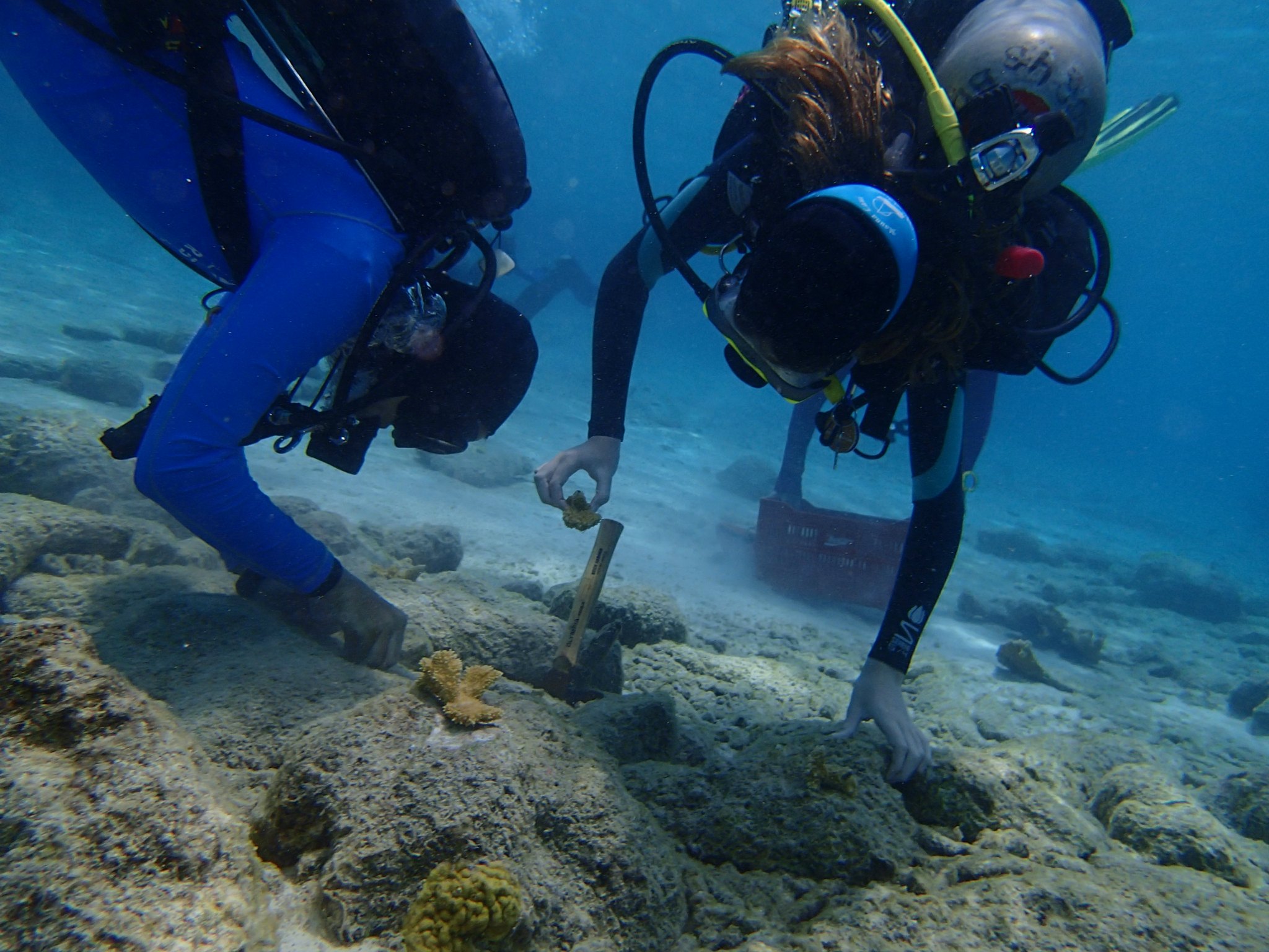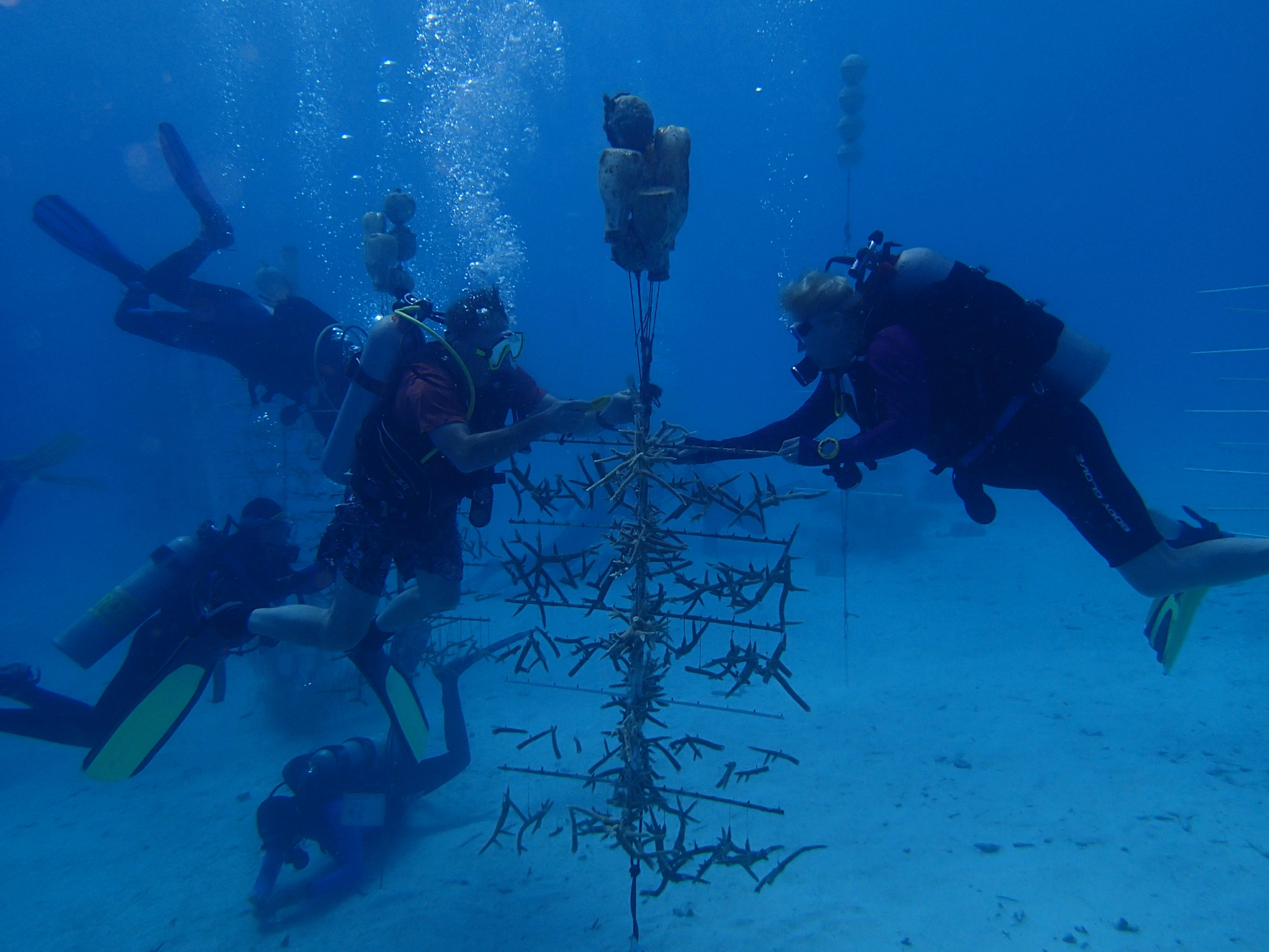 The divers also attach the baby coral to the tree – underwater!